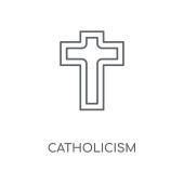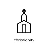 Ikona liniowej chrześcijaństwa. Chrześcijaństwo koncepcja symbol obrysu. Cienkich elementów graficznych wektorowych ilustracji, wzór kontur na białym tle, eps 10.