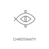 Cross ikona liniowej. Krzyż symbol koncepcja obrysu. Cienkich elementów graficznych wektorowych ilustracji, wzór kontur na białym tle, eps 10.