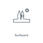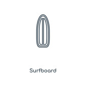 Deska surfingowa ikona liniowej. Deska surfingowa koncepcja symbol obrysu. Cienkich elementów graficznych wektorowych ilustracji, wzór kontur na białym tle, eps 10.