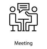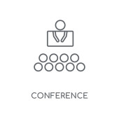Ikona liniowej spotkania. Spotkanie koncepcja symbol obrysu. Cienkich elementów graficznych wektorowych ilustracji, wzór kontur na białym tle, eps 10.