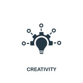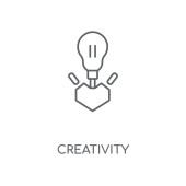 Ikona liniowej kreatywności. Kreatywność koncepcja symbol obrysu. Cienkich elementów graficznych wektorowych ilustracji, wzór kontur na białym tle, eps 10.