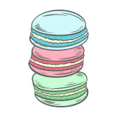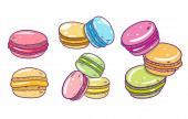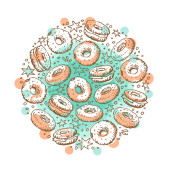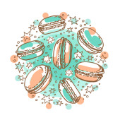 Rama koło makaroniki na białym tle. Wypieki. Doodle stylu. Element projektu dla café menu, ulotki, naklejki lub magnesy.