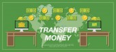 Transfer pieniędzy za pomocą urządzenia przenośnego. Czas ilustracja wektorowa.