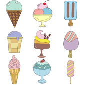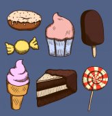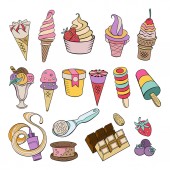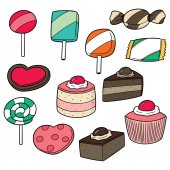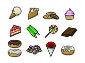 zestaw ikon wektor cukierki, lody i ciasta w kolorze i czarno-biały tynk.