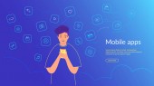Ilustracja wektorowa użytkownika aplikacji w nowoczesnym stylu płaski. Człowiek za pomocą smartphone aplikacja mobilna koncepcja projektowania banerów lub web.