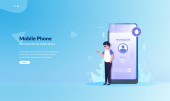 Zdjęcie "Ilustracja wektorowa użytkownika aplikacji w nowoczesnym stylu płaski. Człowiek za pomocą smartphone aplikacja mobilna koncepcja projektowania banerów lub web." może być wykorzystywane do celów osobistych i komercyjnych zgodnie z warunkami zakupionej licencji Royalty-free. Obraz jest dostępny do pobrania w jakości wysokiej rozdzielczości do 5760x3840.