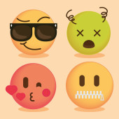 zestaw ikon buźki - wektor kreskówka funky emotikony