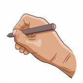 Ręka z piórem przekreślone słowo "Niepowodzenie". Ilustracja stylu