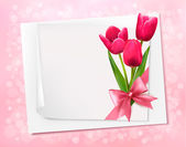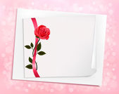 tło wakacje z arkusza papieru i czerwone kwiaty. wektor