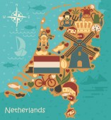 Ilustracja mapa Holandii z miasta, zabytki i przyroda. Ilustracja wektorowa edycji