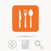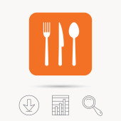 Zdjęcie "Widelec, nóż i łyżka ikony. Sztućce znak." może być wykorzystywane do celów osobistych i komercyjnych zgodnie z warunkami zakupionej licencji Royalty-free. Obraz jest dostępny do pobrania w jakości wysokiej rozdzielczości do 5760x3840.