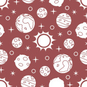 Wzór z słońce, planety, gwiazdy. Eksploracji kosmosu. Astronomia. Nauka