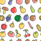 Zdjęcie "Warzywa i owoce bez szwu wzór żywności ekologicznej na białym tle " może być wykorzystywane do celów osobistych i komercyjnych zgodnie z warunkami zakupionej licencji Royalty-free. Obraz jest dostępny do pobrania w jakości wysokiej rozdzielczości do 5760x3840.