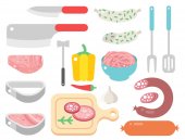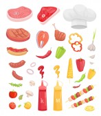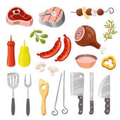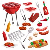 Zestaw Grill, sprzęt do grillowania i mięsa, Vector Icon