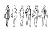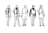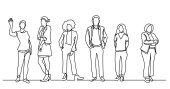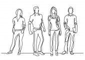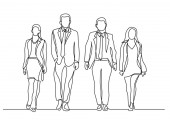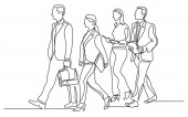 ciągłego rysowania linii biznesowych zespołu chodzenia razem omawiając prace