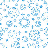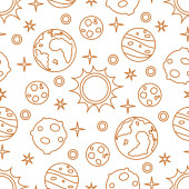 Wzór z słońce, planety, gwiazdy. Eksploracji kosmosu. Astronomia. Nauka