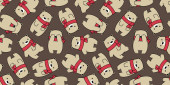 Niedźwiedź niedźwiedź polarny wzór Boże Narodzenie Łyżwy narciarskich śniegu zima panda teddy szalik kreskówka na białym tle dachówka tło tapeta powtarzać ilustracja wektorowa
