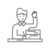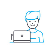 Zdjęcie "Biznesmen za laptop linia ikona koncepcja. Biznesmen za laptopa wektor ilustracja liniowa, symbol, znak" może być wykorzystywane do celów osobistych i komercyjnych zgodnie z warunkami zakupionej licencji Royalty-free. Obraz jest dostępny do pobrania w jakości wysokiej rozdzielczości do 5760x3840.