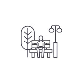 Piesze wycieczki linii ikona koncepcja. Turystyka wektor ilustracja liniowa, symbol, znak