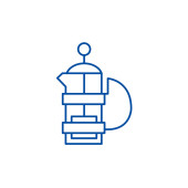 Czajnik z prasy linii ikona koncepcja. Czajnik z prasy wektor ilustracja liniowa, symbol, znak