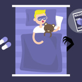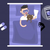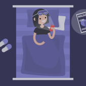 Zdjęcie "Śpiące tracker. Młoda kobieta postać poręczny gadżet na sobie w łóżku, aby kontrolować jakość snu. Ilustracja wektorowa płasko edytowalne, clipart" może być wykorzystywane do celów osobistych i komercyjnych zgodnie z warunkami zakupionej licencji Royalty-free. Obraz jest dostępny do pobrania w jakości wysokiej rozdzielczości do 5760x3840.