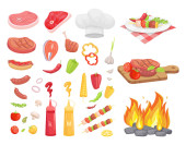 BBQ Grill narzędzia i ilustracji wektorowych mięsa