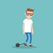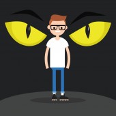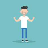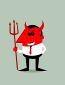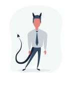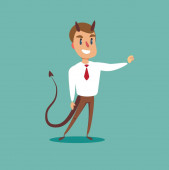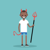 Młody znak noszenia elementów diabeł: rogi, ogon i trident / mieszkanie edytowalny wektor ilustracja, obiekty clipart