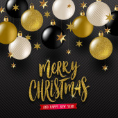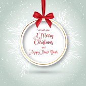 Wiszące białe Cacko Boże Narodzenie brokat złoty łuk wstążki i pozdrowienie projekt typu. Ilustracja wektorowa.