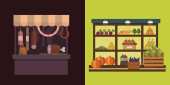 Wektor ilustracja Shop i zestaw ładny różne kolorowe ikony pieścić. Płaska konstrukcja wektor ilustracja koncepcja biznesowa małych. Stylowe pet boutique. Szablon projektu sklepu.