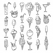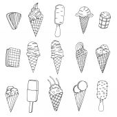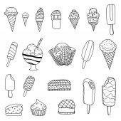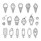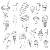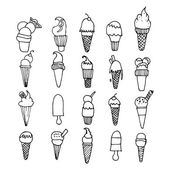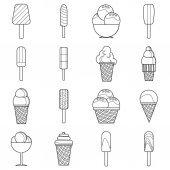 Ikona lody. Zestaw ładny różne ikony desery. Ilustracja wektorowa. Lody Czarna linia na białym tle.