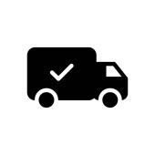 Dostawy glifów ikona, przesyłki i usługi, znak samochód ciężarowy, wektor grafika, wzór stałych na białym tle.