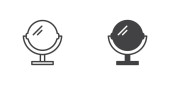 Lustro ikonę linii i glifów, akcesorium i piękno, znak szkło, grafika wektorowa, liniowy model na białym tle.