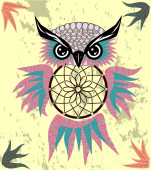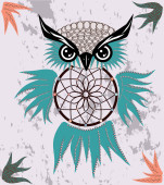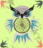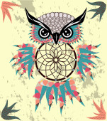 Indian ozdobny Dream Catcher sowa w stylu graficznego. Ilustracja wektorowa