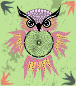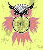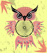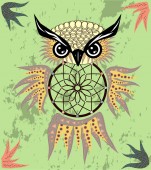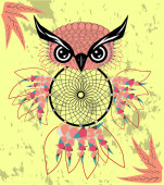 Ręcznie rysowane dreamcatcher Sowa, piór i wszystkie oczy widząc.