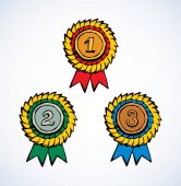 Zdjęcie "zestaw trzy pierwsze, drugie i trzecie miejsce rozety" może być wykorzystywane do celów osobistych i komercyjnych zgodnie z warunkami zakupionej licencji Royalty-free. Obraz jest dostępny do pobrania w jakości wysokiej rozdzielczości do 5760x3840.