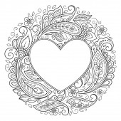 Mehndi kwiatki w postaci serca dla Henna rysunku i tatuaż. Dekoracja w stylu etnicznym orientalne, Indian. Książka do kolorowania.