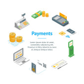 Płatności online znaki 3d karta transparent okrąg izometryczny widok. Wektor