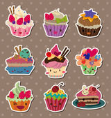Naklejki z różowym słodkie słodycze i serca z białą obwódką i cienie na paski różowy tło wektor rysunek.