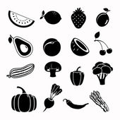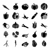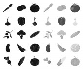 Różnych rodzajów warzyw z czarnym ikony w kolekcja zestaw do projektowania. Warzywa i witamin symbol web czas ilustracja wektorowa.
