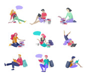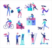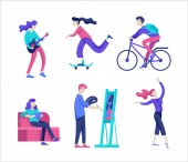Osób korzystających z ich hobby. Wektor znaków. Kolorowe z płaskim