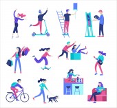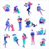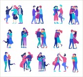 Wektor znaków osób. Przyjaciele i para przytulanie, spacery i spędzić czas tygether