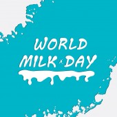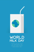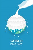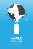 Mleka splash warstwy globu świat kształt wzorkiem krowy, Światowy dzień mleka koncepcja Płaska konstrukcja ilustracja na białym tle na niebieskim tle gradientu z kopii przestrzeni, wektor eps 10