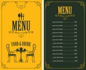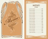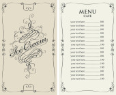 Wektor menu dla restauracji i kawiarni z cennika i kaligraficzna napis w ramce figurowe z loki w stylu barokowym na beżowym tle.