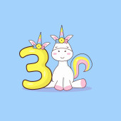 Ładny numer trzy Unicorn ilustracji wektorowych znaków