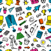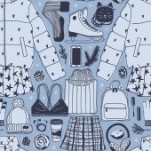 Ilustracja jesień. Sztuka kreatywne atrament pracy szkole rzeczy. Rzeczywiste wektor wzór Student bezszwowe - wektor