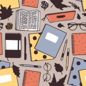 Zdjęcie "Ilustracja jesień. Sztuka kreatywne atrament pracy szkole rzeczy. Rzeczywiste wektor wzór Student bezszwowe - wektor" może być wykorzystywane do celów osobistych i komercyjnych zgodnie z warunkami zakupionej licencji Royalty-free. Obraz jest dostępny do pobrania w jakości wysokiej rozdzielczości do 5760x3840.