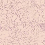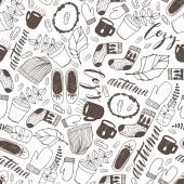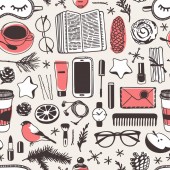 Ręcznie rysowane bezszwowe wzór Świąteczne przedmioty. Ilustracja wektorowa uroczystości. Prac graficznych. Przytulne zimowe zestaw dekoracji. Doodle tło wakacje. -Wektor