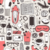 Zdjęcie "Ręcznie rysowane bezszwowe wzór Świąteczne przedmioty. Ilustracja wektorowa uroczystości. Prac graficznych. Przytulne zimowe zestaw dekoracji. Doodle tło wakacje. -Wektor" może być wykorzystywane do celów osobistych i komercyjnych zgodnie z warunkami zakupionej licencji Royalty-free. Obraz jest dostępny do pobrania w jakości wysokiej rozdzielczości do 5760x3840.
