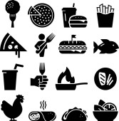 Ikony restauracji i lokali. Wektorowe ikony dla projektów cyfrowych i drukowania.