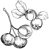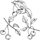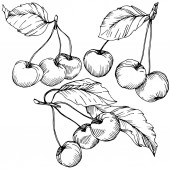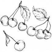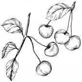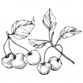 Wektor wiśnia owoców. Czarno-białe grawerowane sztuki atramentu. Element ilustracja na białym tle jagód na białym tle.